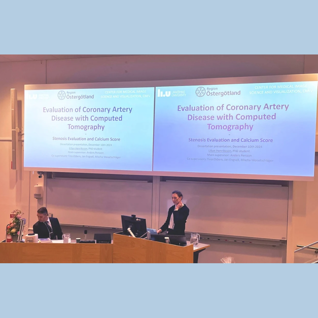 I tisdags, den 10/12, har Lilian, röntgensjuksköterska vid Universitetssjukhuset i Linköping, framgångsrikt försvarat sin doktorsavhandling “Evaluation of Coronary Heart Disease with Computed Tomography - Stenosis Evaluation and Calcium Score”.