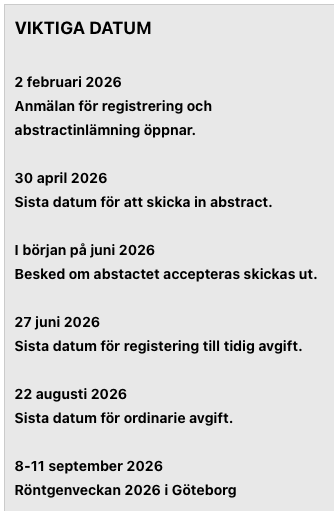 Varmt välkomna till en inspirerande och kunskapsrik Röntgenvecka, 2026 i Göteborg.
